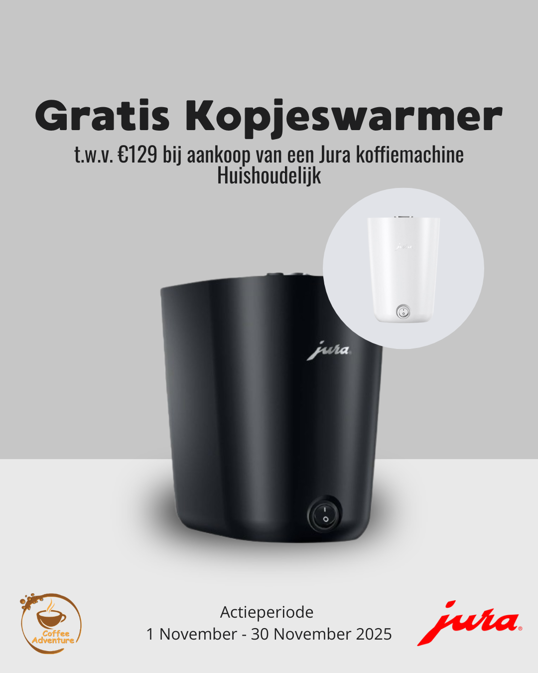 Bij aankoop van een Jura koffiemachine huishoudelijk krijg je deze maand een Jura kopjeswarmer t.w.v. €129 helemaal gratis!