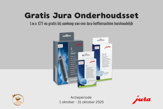 Bij aankoop van een Jura koffiemachine (huishoudelijk) ontvang je nu een complete onderhoudsset gratis.