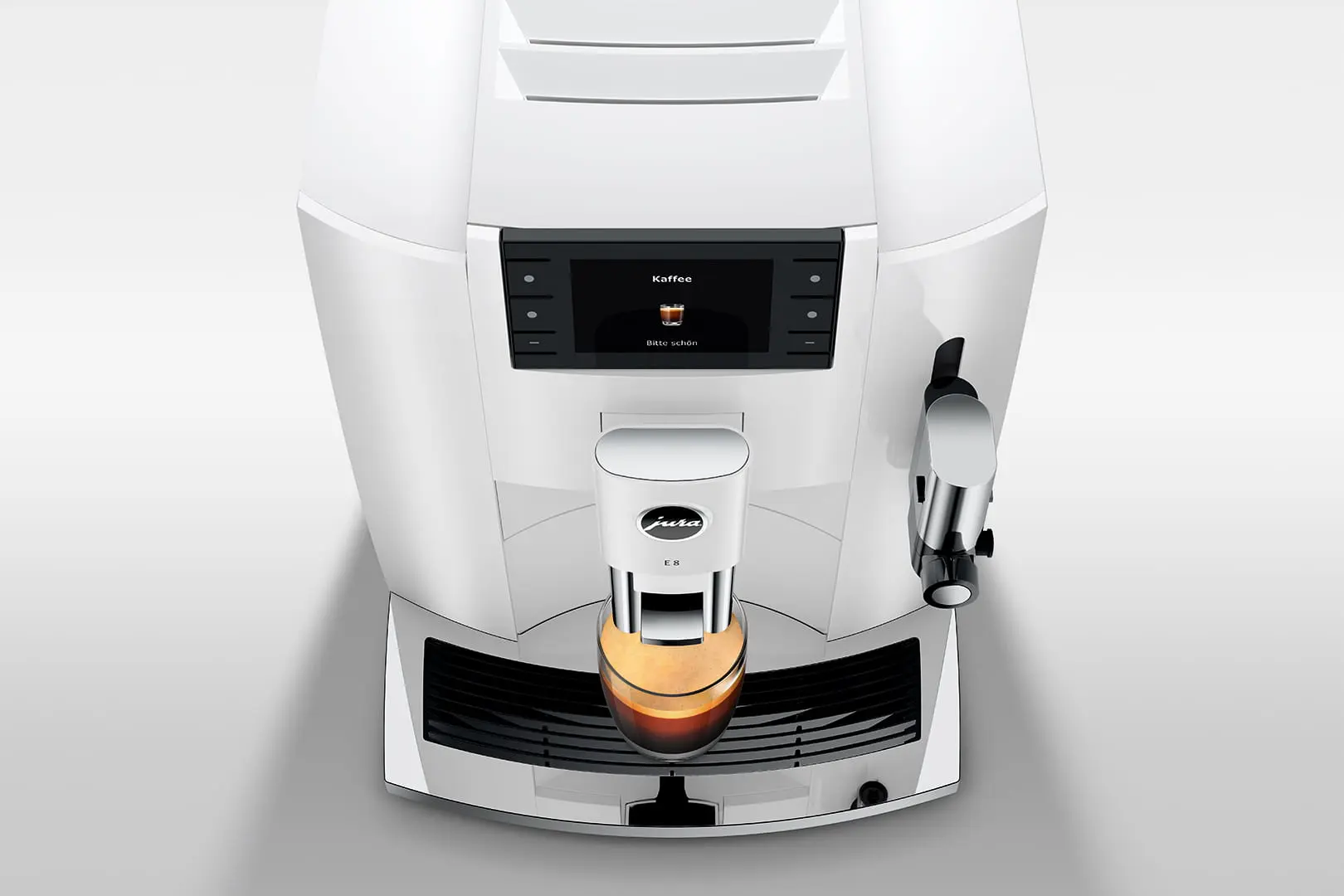 De JURA E8 behoort tot de nieuwste generatie van de populaire E8-serie, die op alle vlakken voldoet aan de veeleisende verwachtingen voor de verdere evolutie van JURA's toonaangevende volautomaten. Dit model is geliefd vanwege zijn voortreffelijke koffieresultaten en de gebruiksvriendelijke bediening. Bovendien valt het op door zijn moderne, elegante design, dat niet alleen praktisch is, maar ook een mooie uitstraling heeft in elke keuken.