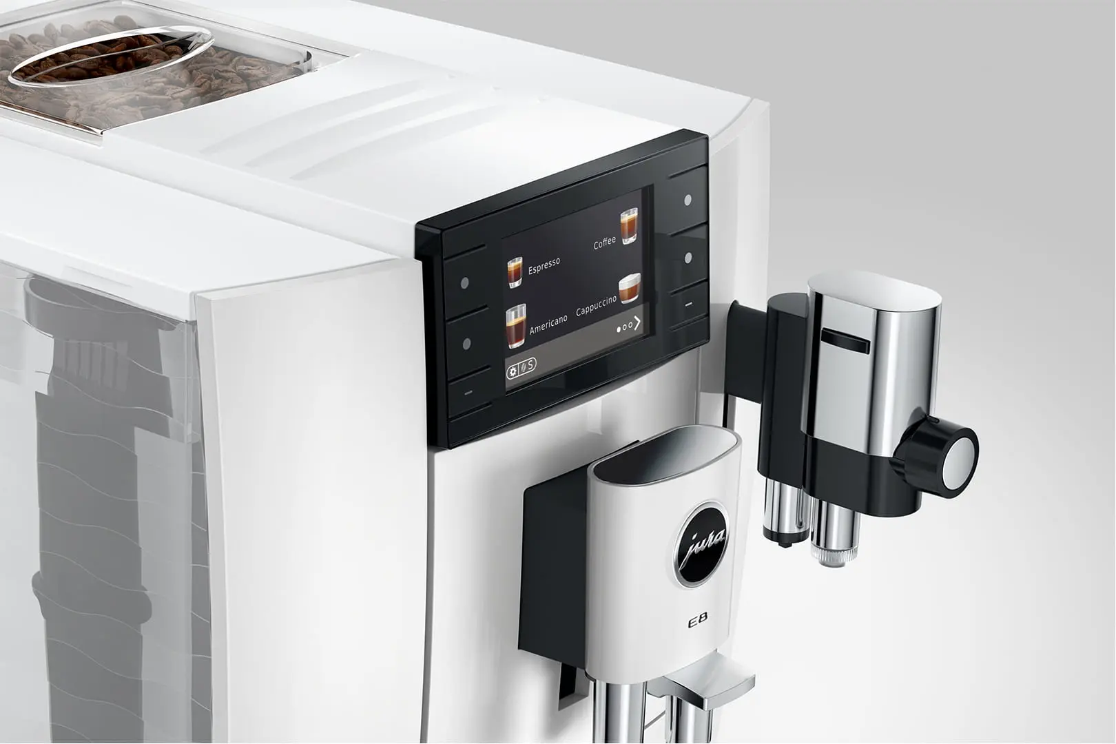 Met een breedte van slechts 27 cm past de E8 moeiteloos in kleinere keukens, terwijl hij tegelijkertijd indruk maakt met zowel zijn stijlvolle design als de premium koffiebeleving.