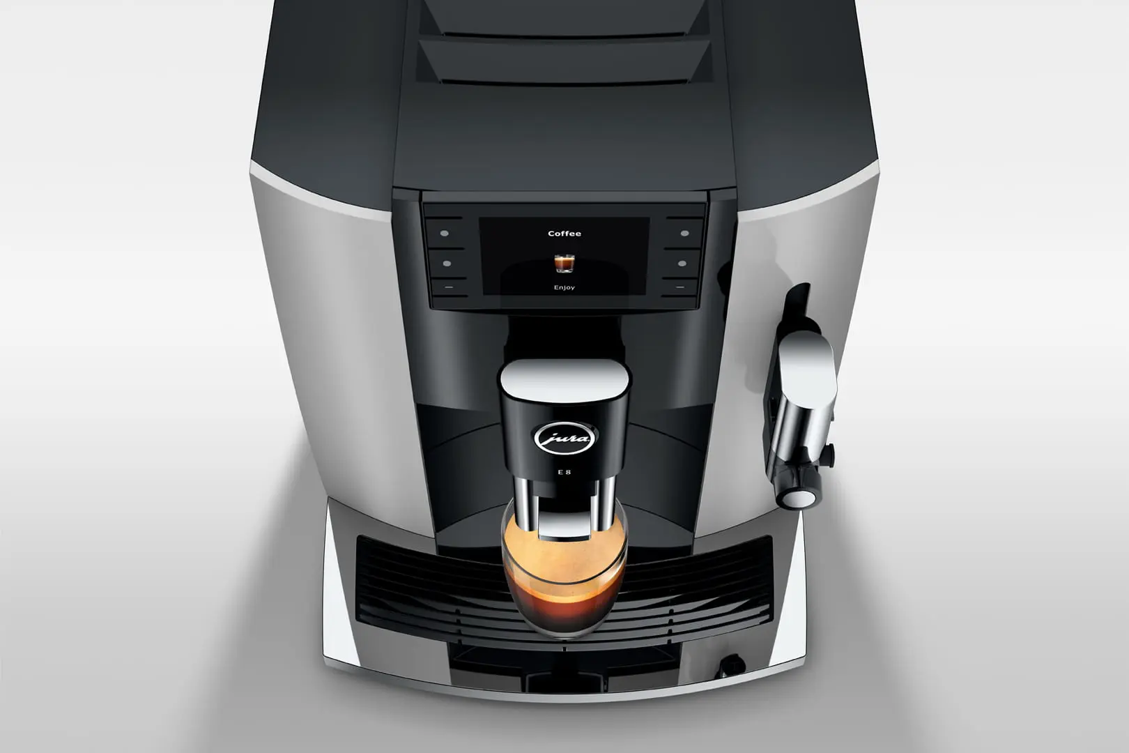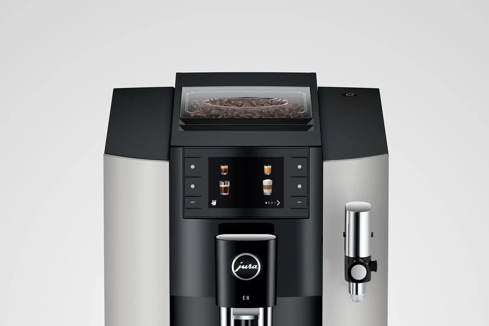 De JURA E8 behoort tot de nieuwste generatie van de populaire E8-serie, die op alle vlakken voldoet aan de veeleisende verwachtingen voor de verdere evolutie van JURA's toonaangevende volautomaten. Dit model is geliefd vanwege zijn voortreffelijke koffieresultaten en de gebruiksvriendelijke bediening. Bovendien valt het op door zijn moderne, elegante design, dat niet alleen praktisch is, maar ook een mooie uitstraling heeft in elke keuken.