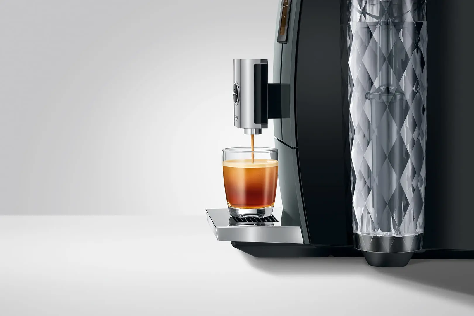 Het diamantpatroon op het waterreservoir en de verchroomde koffie-uitloop maken de ENA 5 niet alleen een functioneel apparaat, maar ook een visuele eyecatcher in je keuken of kantoor.