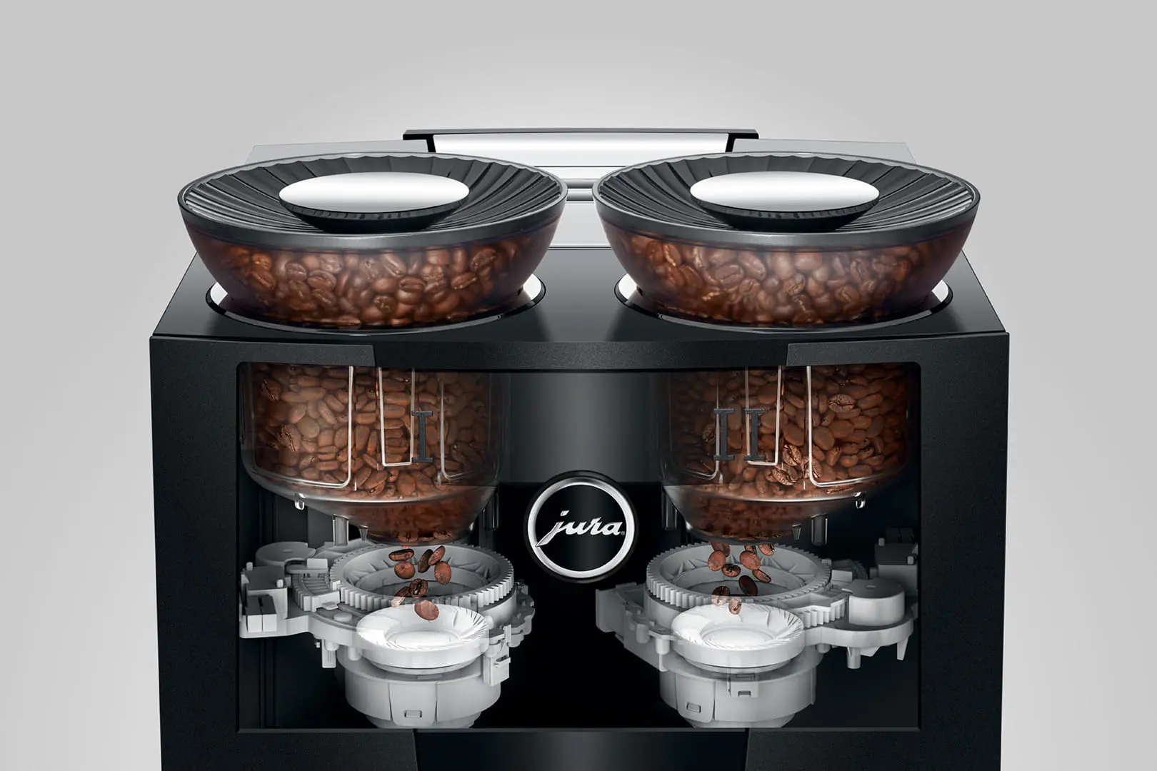 De JURA GIGA 10 is een revolutionaire volautomaat die de grenzen van koffiegenot verlegt en nieuwe standaarden zet in prestatie en kwaliteit. Uitgerust met twee afzonderlijke bonenreservoirs, elk met een eigen molen, biedt de GIGA 10 ongekende flexibiliteit bij het bereiden van koffiespecialiteiten. Het Cold Extraction Process zorgt voor de perfecte Cold Brew, terwijl het panoramische scherm een helder overzicht biedt voor een intuïtieve bediening.