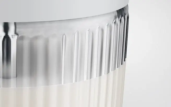 Dankzij de verfijnde ribbelstructuur ligt de karaf stevig in de hand en geeft hij een moderne uitstraling. Het slimme draaideksel maakt vullen eenvoudig en combineert functionaliteit met design. Bovendien wordt de karaf geleverd met twee verwisselbare siliconen adapters, zodat u melk en alternatieven duidelijk kunt onderscheiden. Met zijn compacte formaat past hij moeiteloos in iedere koelkast en blijft hij altijd gebruiksklaar.