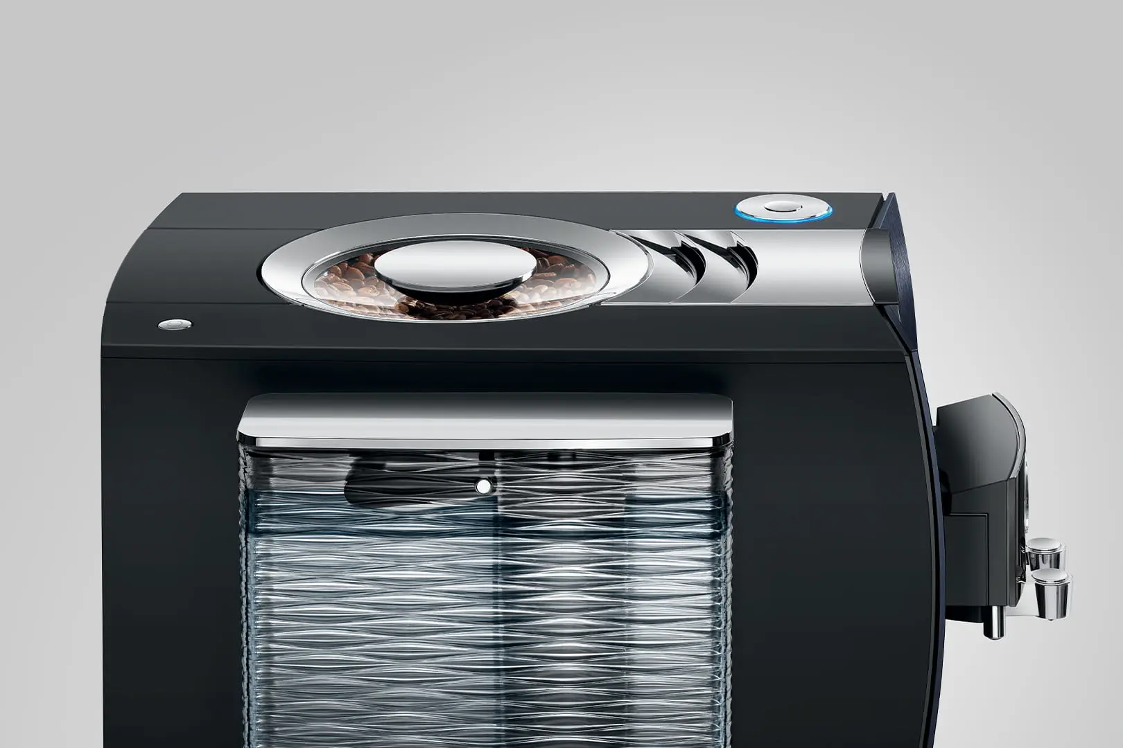 De JURA Z10 is een technologisch hoogstandje van Zwitserse ingenieurskunst dat klassiek koffiegenot combineert met moderne innovaties. Dankzij de geavanceerde Product Recognising Grinder (P.R.G.) en het Cold Extraction Process bereidt de Z10 niet alleen traditionele koffiespecialiteiten zoals espresso en cappuccino, maar ook verfijnde Cold Brew-dranken met één druk op de knop. Het unieke ontwerp van de Z10 in Midnight Blue biedt een subtiele maar luxe uitstraling, geïnspireerd door de sterrenhemel, en past perfect in elke moderne keuken. De combinatie van premium materialen, precisie-engineering en een innovatieve bereidingstechnologie maakt de Z10 een statement van hoogwaardige koffiebeleving en stijl.